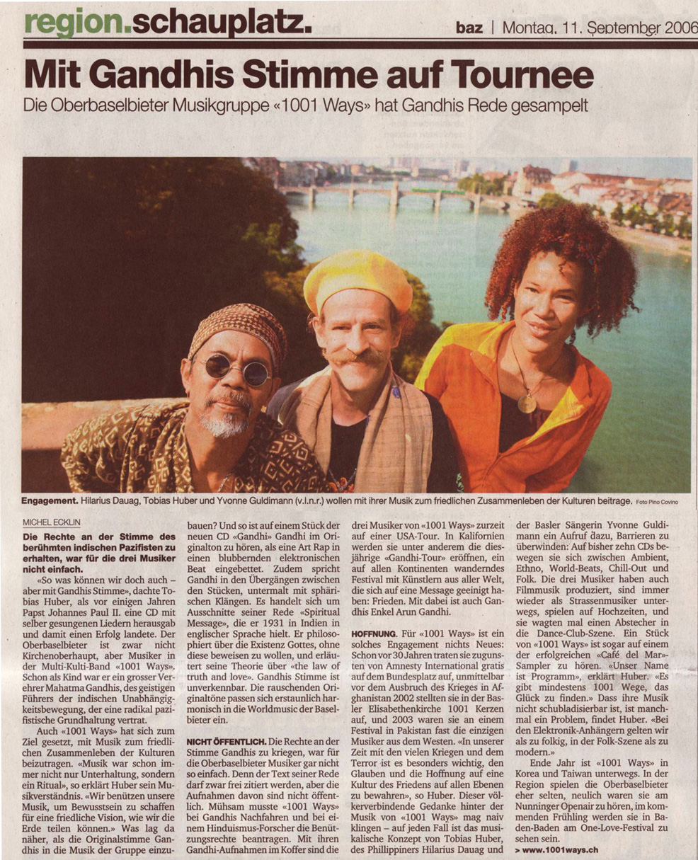 1001 Ways / CD Gandhi / The Gandhi-Tour / Basler Zeitung 11.9.2006